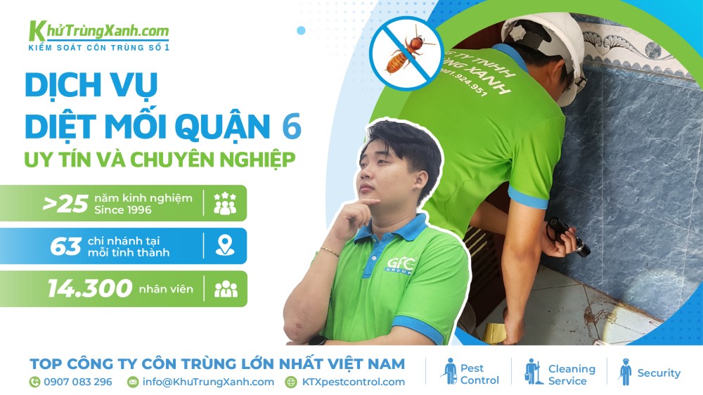 Công ty Diệt côn trùng KTX tự hào mang đến dịch vụ diệt mối chuyên nghiệp và hiệu quả tại Quận 6. Chúng tôi áp dụng các phương pháp tiên tiến để xử lý triệt để mọi vấn đề về mối, bảo vệ an toàn cho ngôi nhà, văn phòng hay nhà xưởng của bạn. Với đội ngũ kỹ thuật viên giàu kinh nghiệm và trang thiết bị hiện đại, Diệt côn trùng KTX luôn cam kết mang đến giải pháp an toàn, không gây hại đến sức khỏe hay môi trường. Đặc biệt, chúng tôi luôn cung cấp dịch vụ diệt mối quận 6 với chi phí hợp lý và minh bạch.